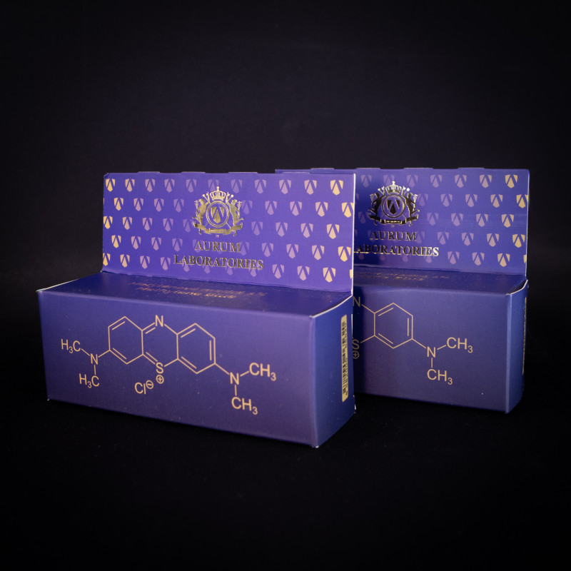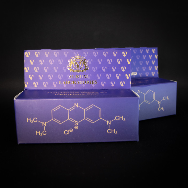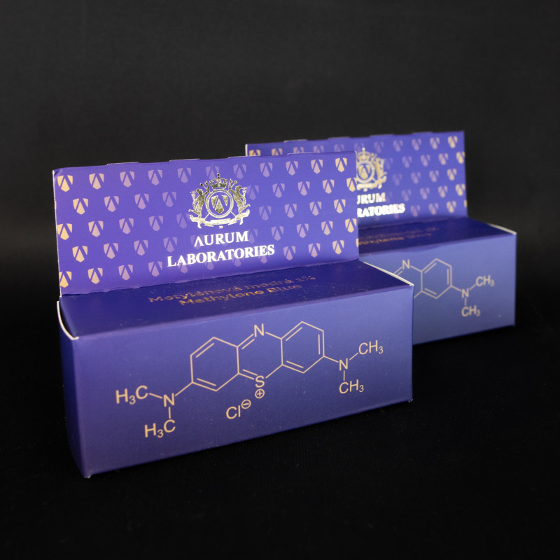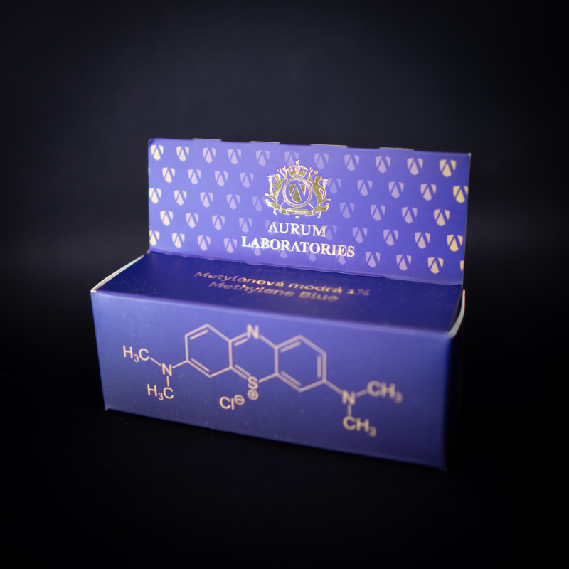 Zloženie: 99 % štruktúrovaná voda, 1 % metylénová modrá Ph. Eur.